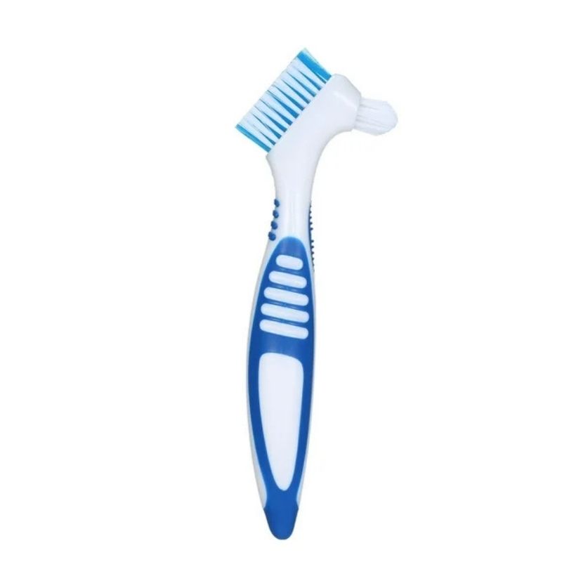 Cepillo para prótesis dental con cerdas duras y gruesas, para remover eficazmente la placa bacteriana y un mango grueso y ondulado que proporciona un firme agarre